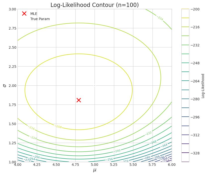 plt.title(rf'Log-Likelihood Contour (n={n})', fontsize=16)